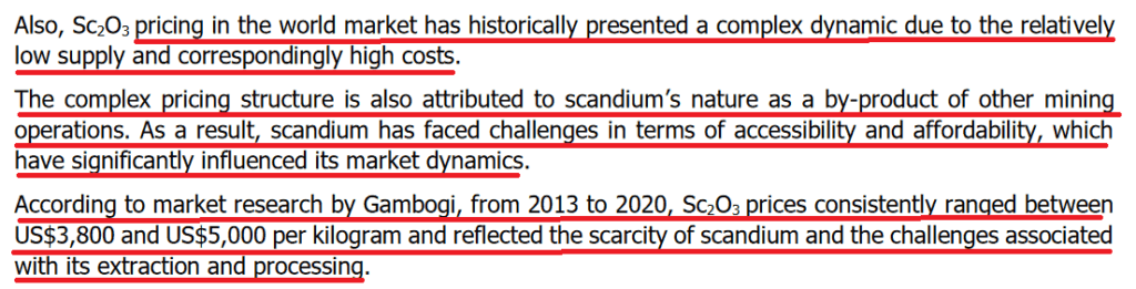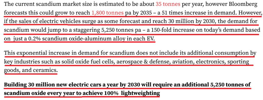 It is interesting to note that mining legend Robert Friedland currently serves as the co-chair and non-executive director of a junior mining company with a scandium project. He is also the company’s largest shareholder. link 1 link2